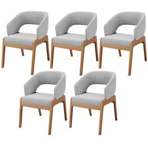 Kit 05 Cadeiras de Jantar e Estar Living Estofada Lince L02 Bouclê Cinza - Lyam Decor - Cinza Claro