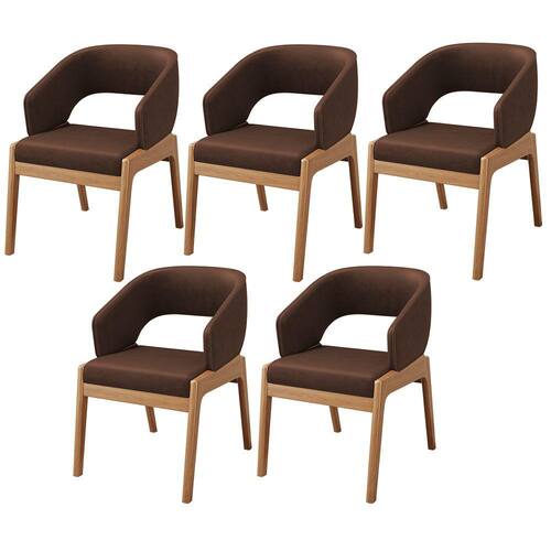 Kit 05 Cadeiras de Jantar e Estar Living Estofada Lince L02 Couríssimo Marrom - Lyam Decor