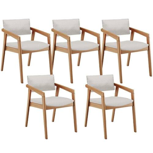 O Kit 05 Cadeiras Para Sala de Jantar Estar Living Giorgia B04 Bouclê Cru, da Lyam Decor, é perfeito para adicionar um toque moderno à sala de jantar. Com sua estrutura em madeira maciça envernizada, ela traz durabilidade e estilo para o ambiente. O assento e o encosto estofados e revestidos com tecidos alto padrão proporcionam conforto durante as refeições, além de serem fáceis de limpar.