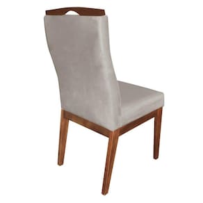 Conjunto 05 Cadeiras Para Sala De Jantar Ricco Estofada Madeira Carvalho Veludo Bege Claro - Ahazzo Móveis Cor Bege