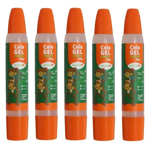 Kit 05 Colas Gel Escolar Artesanato 2 Bicos 30g Leo e Leo
