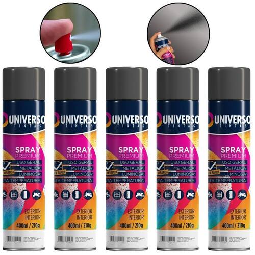 Tinta Spray 400ml Preto Brilhante Uso Geral em Aço Ferro Couro Gesso Cerâmica A Tinta Spray 400ml Preto Brilhante Uso Geral é a solução prática para renovar superfícies de metal, gesso, couro e cerâmica. Ideal para dar vida nova a bicicletas, móveis, eletrodomésticos e objetos em geral, garantindo um acabamento moderno e duradouro. Com fórmula de alta qualidade, oferece excelente aderência e acabamento Brilhante, além de resistência superior contra desgastes do dia a dia. Sua cobertura uniforme realça os detalhes e proporciona um resultado em poucas camadas. Prática e fácil de aplicar, a tinta spray seca ao toque em apenas 15 minutos, permitindo agilidade nos trabalhos e economia de tempo. O rendimento de até 2 m por demão garante maior aproveitamento do produto e ótimo custo-benefício. Diferenciais: Acabamento Brilhante com ótima aderência Alta durabilidade e resistência em ambientes internos e externos Secagem rápida e aplicação prática com cobertura uniforme Especificações TÉCNICAS: Volume: 400ml Rendimento: até 2 m por demão Superfícies indicadas: metal, gesso, couro e cerâmica Secagem: toque em 15 minutos Acabamento: Brilhante Recomendação: uso de primer para melhor desempenho Itens INCLUSOS: 05 Tintas Spray 400ml Preto Brilhante Uso Geral Marca: Não Informado