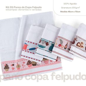 - Garantia contra defeito de fábrica.KIT 05 PANOS DE COPA FELPUDO