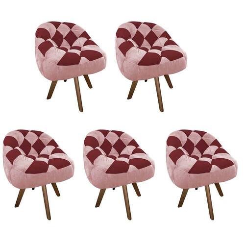 Kit 05 Poltrona Paloma Giratória Madeira Suede Rosa Bebê e Suede Vinho