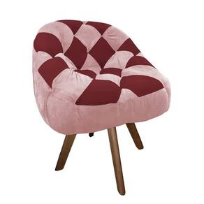 Kit 05 Poltrona Paloma Escritório Sala Giratória Madeira Suede Rosa Bebê E Suede Vinho - Dominic Decor