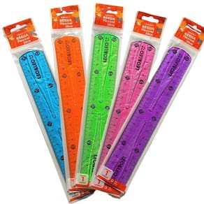 A Régua Flexível possui 5 cores super divertidas, corpo maleável e resistente, é ideal para o dia dia escolar.