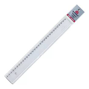 Régua em poliestireno firme e resistente fabricado em Poliestireno. Comprimento: 30 centímetros e escala em centímetros e polegadas. 3mm de espessura