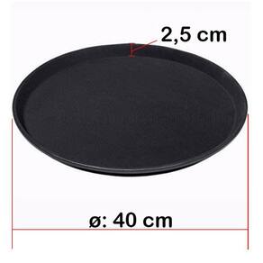 Kit 06 Bandeja Redonda Antiderrapante Para Servir 40Cm Praticidade, Beleza, Agilidade e Segurança para Servir seus Clientes CONTEÚDO 06 Bandejas Antiderrapante Redonda 40cm A Bandeja Redonda é indispensável para serviços de garçom, é feita em material polipropileno de alta resistência e revestida com camada antiderrapante emborrachada, ideal para servir convidados em suas festas e eventos ou servir seus clientes em bares, lanchonetes e restaurantes. Toda beleza e sofisticação, visando mais segurança e reduzindo riscos de acidentes no momento de servir suas bebidas e alimentos ou recolher copos e pratos já utilizados. Marca: Kehome Material: Polipropileno Cor predominante: Preta Obs: Foto meramente ilustrativa, os demais itens não fazem parte do produto. DIMENSÕES INDIVIDUAIS Diâmetro: 40 cm Altura: 2,5 cm Peso Aprox.: 800g