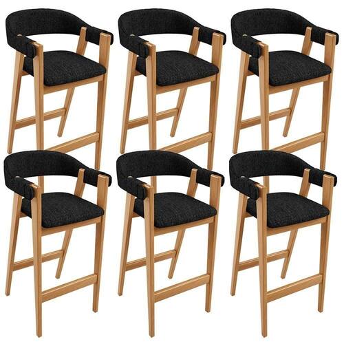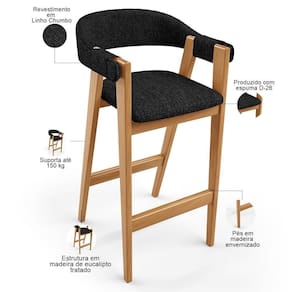 ProductWidth: 52 cm | Color: Preto | ColorFamily: Preto | ColorSimple: grafite | ColorSupplier: grafite | Material: Estrutura em Madeira, Revestimento em Linho e espuma | MaterialFamily: Madeira, linho e espuma | Model: Nadja | OriginCountry: Nacional | OriginState: PR | ProductContents: 06 Banquetas | ProductHeight: 260 cm | SizeDescription: Altura: 260 cm x Largura: 52 cm x Profundidade: 53 cm | ProductInstructions: Produto para uso em ambiente interno, nao devendo ficar exposto ao sol, calor e umidade excessivos. | ProductLength: 53 cm | ProductWarranty: 90 dias após o recebimento do produto | ProductWeight: 60 kg | SupplierSimpleName: Kit 06 Banquetas Alta Bar Cozinha Sala de Jantar Bar Nadja L02 Linho grafite - Lyam Decor