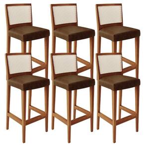 O Kit 06 Banquetas Alta Para Cozinha Sala de Jantar Fixa Telado Branco Zion L02 Linho Couríssimo Marrom - Lyam Decor, possui um estilo rustico que faltava para deixar sua casa ainda mais clássica. Seu encosto com o detalhe de tela sintética na cor branca trazem ainda mais estilo e destaque para sua decoração, junto com assento estofado que proporciona horas de conforto. A estrutura e o apoio para os pés, são responsáveis por garantir maior à mesma.