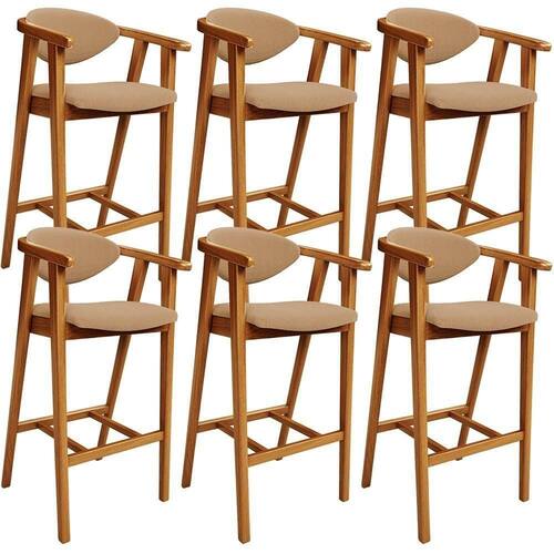 Color: Amarelo | ColorFamily: Amarelo | ColorSimple: Amarelo | ColorSupplier: Amarelo | Com apoio de braços: Sim | Material: Madeira | MaterialFamily: Madeira | Model: Cecília | OriginCountry: | OriginState: PR | ProductContents: 06 Cadeiras | ProductHeight: 102 cm | ProductInstructions: Produto para uso em ambiente interno, nao devendo ficar exposto ao sol, calor e umidade excessivos. | ProductLength: 47 cm | ProductWarranty: 90 dias após o do produto | ProductWeight: 48 kg | ProductWidth: 51 cm | SizeDescription: Altura: 102 cm Largura: 51 cm Profundidade: 47 cm | SupplierSimpleName: Kit 06 Banquetas Alta Cozinha Bancada Bar Sala de Jantar Fixa Cecília L02 Bouclê Mostarda - Lyam