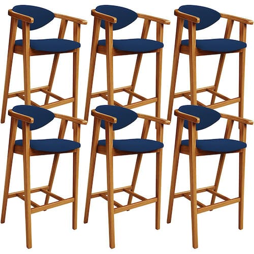 A melhor escolha para os momentos de confraternização no aconchego da sua casa, acaba de chegar! O Kit 06 Banquetas Alta Para Cozinha Bancada Bar Sala de Jantar Fixa Cecília L02 Suede Azul Marinho - Lyam vem com a personalidade e elegância que sua decoração merece! É ideal desde refeições rápidas, até um Happy Hour com os amigos, família. Seu design único valoriza o ambiente, sem deixar pra trás a beleza e qualidade! Para deixar a sua área gourmet mais aconchegante, ela possui assento e encosto estofados, confeccionados com materiais de excelente qualidade, e extremamente resistentes.