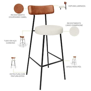 Amplamente moderna, dispondo de muito realce e design singular, o Kit 06 Banquetas Alta Bar Cozinha Sala De Jantar Aço Milão L02 Couríssimo Camel Linho Champagne - Lyam Decor vem com a personalidade e elegância que sua decoração merece! Estruturada em aço carbono, contrasta lindamente com o encosto e assento estofados, cabe mencionar ainda o revestimento do seu encosto em Couríssimo e do assento em Linho, é confeccionada por materiais de excelente qualidade, extremamente resistentes e aconchegantes.