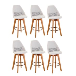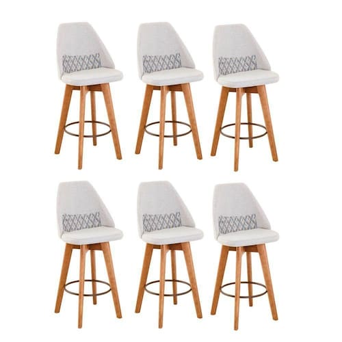 Kit 06 Banquetas Alta Maya Giratória Com Encosto Linho Bege Claro E Almofada Zigzag - Aurora Line