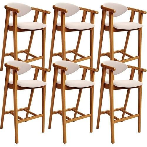 A melhor escolha para os momentos de confraternização no aconchego da sua casa, acaba de chegar! O Kit 06 Banquetas Alta Para Cozinha Bancada Bar Sala de Jantar Fixa Cecília L02 Suede Bege - Lyam vem com a personalidade e elegância que sua decoração merece! É ideal desde refeições rápidas, até um Happy Hour com os amigos, família. Seu design único valoriza o ambiente, sem deixar pra trás a beleza e qualidade! Para deixar a sua área gourmet mais aconchegante, ela possui assento e encosto estofados, confeccionados com materiais de excelente qualidade, e extremamente resistentes.