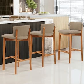 Na cozinha ou qualquer outro ambiente, o Kit 06 Banquetas Alta Para Cozinha Sala de Jantar Bar Dara se destaca por seu design clássico, sem deixar de exaltar a delicadeza deste modelo. Com uma estrutura de madeira que exala nobreza e sofisticação, essa banqueta estofada é o convite perfeito para momentos de confraternizar. O estofado macio, harmoniza com os demais elementos do ambiente, além do encosto proporcionar muito conforto enquanto se desfruta de momentos incríveis com aconchego. A vida é feita de pequenas celebrações, e essa banqueta está pronta para torná-las ainda mais especiais. Adicione ao seu carrinho e aproveite!