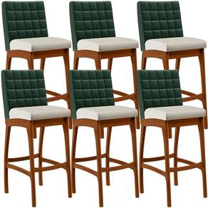 ndo muita excelência, o Kit 06 Banquetas Altas Sala De Jantar Fixa Mila B04 Facto Verde Musgo Linho Champagne - Lyam Decor é o complemento que faltava para deixar sua casa ainda mais extraordinária. Seu encosto com costura em padrão quadriculado e assento estofados, centralizam em si uma graciosidade estonteante, sem perder todo o conforto. A estrutura em madeira, na cor nozes, também é digna de notoriedade, por imprimir bastante personalidade a sua decoração. Vale ressaltar ainda, o apoio para os pés que garante maior à banqueta.