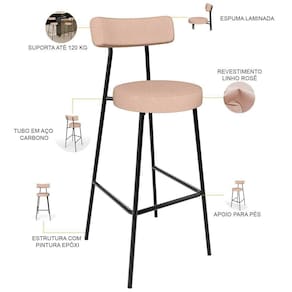 Amplamente moderna, dispondo de muito realce e design singular, O Kit 06 Banquetas Altas Bar Cozinha Sala De Jantar Estrutura Em Aço Milão L02 Linho Rosê - Lyam Decor vem com a personalidade e elegância que sua decoração merece! Estruturada em aço carbono, contrasta lindamente com o encosto e assento estofados, cabe mencionar ainda seu revestimento em Linho, é confeccionada por materiais de excelente qualidade, extremamente resistentes e aconchegantes. Possui altura ideal, garantindo o encaixe perfeito no ambiente, otimizando seu espaço e promovendo máximo conforto. Pode ser disposta em bancada, cozinha americana, área gourmet ou home bar, as possibilidades são infinitas e as combinações ficarão perfeitas. Adquira já a sua!!