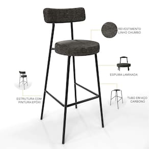 Amplamente moderno dispondo de muito realce e design singular, o Kit 06 Banquetas Altas Cozinha Sala De Jantar Estrutura Em Aço Milão F01 Linho Chumbo - Lyam Decor vem com a personalidade e elegância que sua decoração merece! Estruturado em aço carbono, contrasta lindamente com o encosto e assento estofados, cabe mencionar ainda seu revestimento em Linho, é confeccionado por materiais de excelente qualidade, extremamente resistentes e aconchegantes.