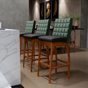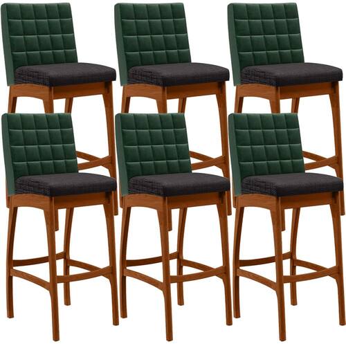 Entregando muita excelência, o Kit 06 Banquetas Altas Cozinha Sala Jantar Fixa Mila B04 Facto Verde Musgo Linho Chumbo - Lyam Decor é o complemento que faltava para deixar sua casa ainda mais extraordinária. Seu encosto com costura em padrão quadriculado e assento estofados, centralizam em si uma graciosidade estonteante, sem perder todo o conforto. A estrutura em madeira, na cor nozes, também é digna de notoriedade, por imprimir bastante personalidade a sua decoração. Vale ressaltar ainda, o apoio para os pés que garante maior segurança à banqueta.
