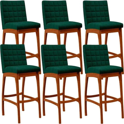 ndo muita excelência, o Kit 06 Banquetas Altas Para Cozinha Sala De Jantar Fixa Mila B04 Bouclê Verde - Lyam Decor é o complemento que faltava para deixar sua casa ainda mais extraordinária. Seu encosto com costura em padrão quadriculado e assento estofados, centralizam em si uma graciosidade estonteante, sem perder todo o conforto, sendo revestidos pelo riquíssimo tecido em bouclê que por si só já é um espetáculo. A estrutura em madeira, na cor nozes, também é digna de notoriedade, por imprimir bastante personalidade a sua decoração. Vale ressaltar ainda, o apoio para os pés que garante maior à banqueta.