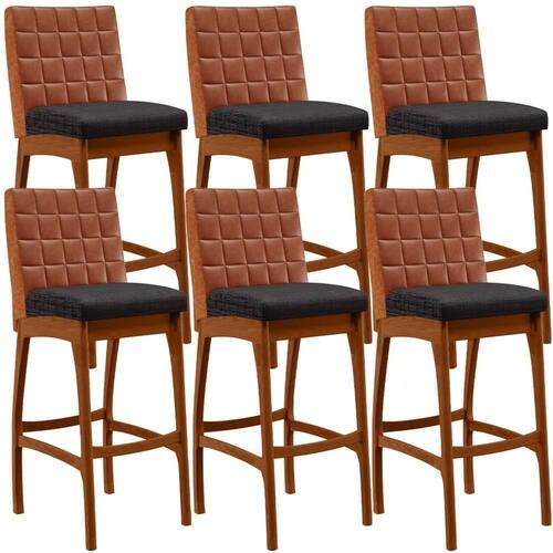 ndo muita excelência, o Kit 06 Banquetas Altas Cozinha Sala Jantar Fixa Mila B04 Couríssimo Camel Linho Chumbo - Lyam Decor é o complemento que faltava para deixar sua casa ainda mais extraordinária. Seu encosto com costura em padrão quadriculado e assento estofados, centralizam em si uma graciosidade estonteante, sem perder todo o conforto. A estrutura em madeira, na cor nozes, também é digna de notoriedade, por imprimir bastante personalidade a sua decoração. Vale ressaltar ainda, o apoio para os pés que garante maior à banqueta.