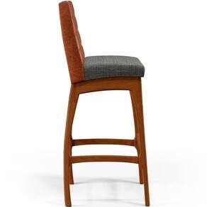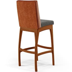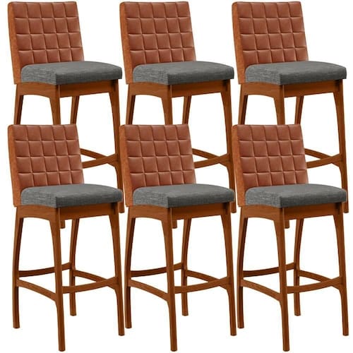 ndo muita excelência, o Kit 06 Banquetas Altas Sala De Jantar Fixa Mila B04 Couríssimo Camel Linho Cinza Escuro - Lyam Decor é o complemento que faltava para deixar sua casa ainda mais extraordinária. Seu encosto com costura em padrão quadriculado e assento estofados, centralizam em si uma graciosidade estonteante, sem perder todo o conforto. A estrutura em madeira, na cor nozes, também é digna de notoriedade, por imprimir bastante personalidade a sua decoração. Vale ressaltar ainda, o apoio para os pés que garante maior segurança à banqueta.