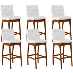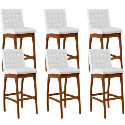 ndo muita excelência, a Kit 06 Banquetas Altas Para Cozinha Sala de Jantar Fixa Mila B04 Facto Branco Fosco - Lyam Decor é o complemento que faltava para deixar sua casa ainda mais extraordinária. Seu encosto com costura em padrão quadriculado e assento estofados, centralizam em si uma graciosidade estonteante, sem perder todo o seu conforto. A estrutura em madeira, na cor nozes, também é digna de notoriedade, por imprimir bastante personalidade a sua decoração. Vale ressaltar ainda, o apoio para os pés que garante maior à mesma.