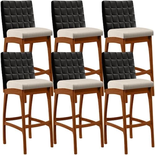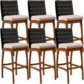 Entregando muita excelência, o Kit 06 Banquetas Altas Cozinha Sala De Jantar Fixa Mila B04 Couríssimo Preto Linho Cru - Lyam Decor é o complemento que faltava para deixar sua casa ainda mais extraordinária. Seu encosto com costura em padrão quadriculado e assento estofados, centralizam em si uma graciosidade estonteante, sem perder todo o conforto. A estrutura em madeira, na cor nozes, também é digna de notoriedade, por imprimir bastante personalidade a sua decoração. Vale ressaltar ainda, o apoio para os pés que garante maior segurança à banqueta.