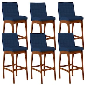 ndo muita excelência, o Kit 06 Banquetas Altas Para Cozinha Sala de Jantar Fixa Mila B04 Suede Azul Marinho - Lyam Decor é o complemento que faltava para deixar sua casa ainda mais extraordinária. Seu encosto com costura em padrão quadriculado e assento estofados, centralizam em si uma graciosidade estonteante, sem perder todo o seu conforto. A estrutura em madeira, na cor nozes, também é digna de notoriedade, por imprimir bastante personalidade a sua decoração. Vale ressaltar ainda, o apoio para os pés que garante maior à mesma.