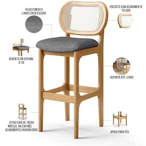 Amplamente sofisticada, a Banqueta Alta Para Cozinha Bancada Sala Tela Betta Fixa L02 Linho Cinza Escuro - Lyam irá agregar ainda mais valor em sua decoração!! Sendo capaz de compor muito bem o ambiente, é produzida com materiais de excelente qualidade, a resistente estrutura em madeira de Taeda, na cor Mel, conta com apoio para os pés (que garante maior segurança), além do assento e encosto estofados super confortáveis e convidativos, que são revestidos em tecido Linho, extremamente elegante. Podendo ser disposta em bancada, cozinha americana, espaço gourmet ou home bar, as possibilidades de combinação são infinitas, o que a torna perfeita para receber família e amigos sempre de forma agradável e aconchegante, sem perder a sobriedade e requinte que possui. Você e seu lar merecem, adquira já a sua!!