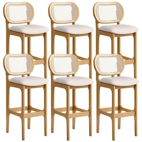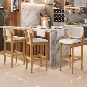 Kit 06 Banquetas Altas Para Cozinha Bancada Sala Tela Betta Fixa L02 Linho Cru - Lyam - Off White
