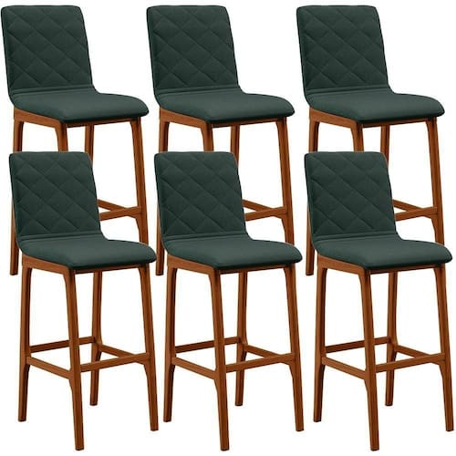 O complemento perfeito para o seu ambiente existe e está aqui! O Kit 06 Banquetas Altas Para Cozinha Sala de Jantar Fixa Zoe B04 Linho Verde Musgo - Lyam Decor vai ampliar totalmente a maneira como você compunha sua decoração, numa pegada clássica, com belíssima estrutura em madeira, na cor nozes, possui assento e encosto estofados super confortáveis e convidativos, além do apoio para os pés que garante maior segurança.