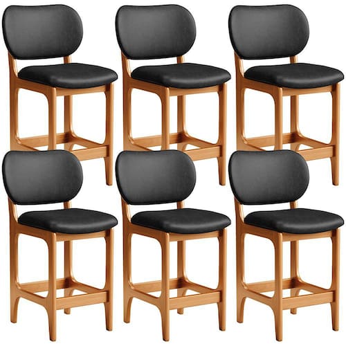Amplamente sofisticada, o Kit 06 Banquetas Baixa Bar Cozinha Sala Jantar Betta L02 Imbuia Couríssimo Preto - Lyam Decor irá agregar ainda mais valor em sua decoração!! Sendo capaz de compor muito bem o ambiente, é produzida com materiais de excelente qualidade, a resistente estrutura em madeira de Taeda, na cor imbuia, conta com apoio para os pés (que garante maior segurança), além do assento e encosto estofados super confortáveis e convidativos, que são revestidos em tecido Couríssimo, composição extremamente elegante.