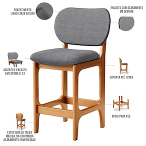 Amplamente sofisticada, o Kit 06 Banquetas Baixa Bar Cozinha Sala Jantar Betta L02 Imbuia Linho Cinza Escuro - Lyam Decor irá agregar ainda mais valor em sua decoração!! Sendo capaz de compor muito bem o ambiente, é produzida com materiais de excelente qualidade, a resistente estrutura em madeira de Taeda, na cor imbuia, conta com apoio para os pés (que garante maior segurança), além do assento e encosto estofados super confortáveis e convidativos, que são revestidos em tecido Couríssimo, composição extremamente elegante.