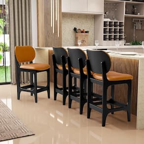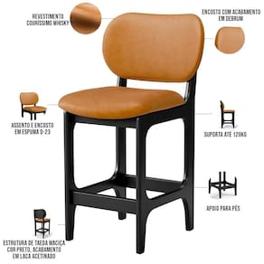 Amplamente sofisticada, o Kit 06 Banquetas Baixa Bar Cozinha Sala Jantar Betta L02 Couríssimo Whisky - Lyam Decor irá agregar ainda mais valor em sua decoração!! Sendo capaz de compor muito bem o ambiente, é produzida com materiais de excelente qualidade, a resistente estrutura em madeira de Taeda, na cor Preto, conta com apoio para os pés (que garante maior segurança), além do assento e encosto estofados super confortáveis e convidativos, que são revestidos em tecido Couríssimo, composição extremamente elegante.