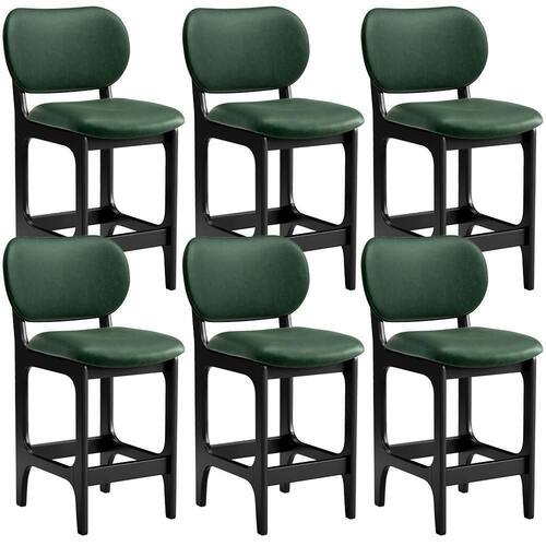 Amplamente sofisticada, o Kit 06 Banquetas Baixa Bar Cozinha Sala Jantar Betta L02 Facto Verde Musgo - Lyam Decor irá agregar ainda mais valor em sua decoração!! Sendo capaz de compor muito bem o ambiente, é produzida com materiais de excelente qualidade, a resistente estrutura em madeira de Taeda, na cor Preto, conta com apoio para os pés (que garante maior ), além do assento e encosto estofados super confortáveis e convidativos, que são revestidos em tecido Couríssimo, composição extremamente elegante.