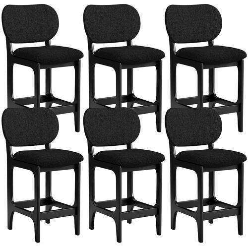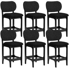 Amplamente sofisticada, o Kit 06 Banquetas Baixa Bar Cozinha Sala Jantar Betta L02 Linho Chumbo - Lyam Decor irá agregar ainda mais valor em sua decoração!! Sendo capaz de compor muito bem o ambiente, é produzida com materiais de excelente qualidade, a resistente estrutura em madeira de Taeda, na cor Preto, conta com apoio para os pés (que garante maior segurança), além do assento e encosto estofados super confortáveis e convidativos, que são revestidos em tecido Couríssimo, composição extremamente elegante.