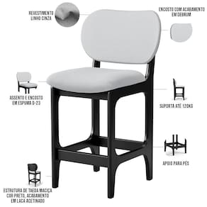 Amplamente sofisticada, o Kit 06 Banquetas Baixa Bar Cozinha Sala Jantar Betta L02 Linho Cinza - Lyam Decor irá agregar ainda mais valor em sua decoração!! Sendo capaz de compor muito bem o ambiente, é produzida com materiais de excelente qualidade, a resistente estrutura em madeira de Taeda, na cor Preto, conta com apoio para os pés (que garante maior ), além do assento e encosto estofados super confortáveis e convidativos, que são revestidos em tecido Couríssimo, composição extremamente elegante.
