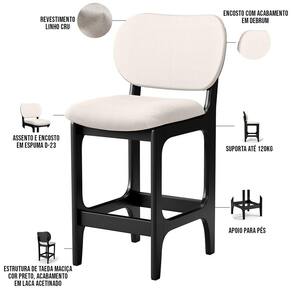 Amplamente sofisticada, o Kit 06 Banquetas Baixa Bar Cozinha Sala Jantar Betta L02 Linho Cru - Lyam Decor irá agregar ainda mais valor em sua decoração!! Sendo capaz de compor muito bem o ambiente, é produzida com materiais de excelente qualidade, a resistente estrutura em madeira de Taeda, na cor Preto, conta com apoio para os pés (que garante maior segurança), além do assento e encosto estofados super confortáveis e convidativos, que são revestidos em tecido Couríssimo, composição extremamente elegante.