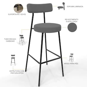 Amplamente moderna, dispondo de muito realce e design singular, a Banqueta Baixa Para Cozinha Sala De Jantar Bar Bancada Milão L02 Suede Cinza - Lyam Decor vem com a personalidade e elegância que sua decoração merece! Estruturada em aço carbono, contrasta lindamente com o encosto e assento estofados, cabe mencionar ainda seu revestimento em Couríssimo, é confeccionada por materiais de excelente qualidade, extremamente resistentes e aconchegantes.