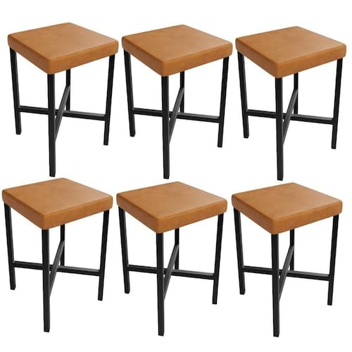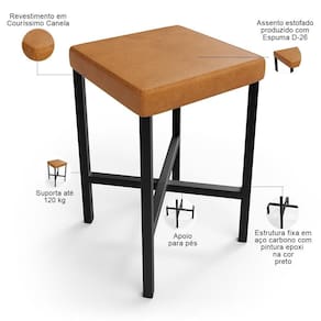 Color: Laranja | ColorFamily: Laranja | ColorSimple: Laranja | ColorSupplier: Canela | Material: Estrutura de aço carbono, Revestimento em Couríssimo e espuma | MaterialFamily: Aço carbono, couro sintético e espuma | Model: Stella | OriginCountry: Nacional | OriginState: PR | ProductContents: 06 Banquetas | ProductHeight: 98 cm | ProductInstructions: Produto para uso em ambiente interno, nao devendo ficar exposto ao sol, calor e umidade excessivos. | ProductLength: 37 cm | ProductWarranty: 90 dias após o recebimento do produto | ProductWeight: 24 kg | ProductWidth: 39 cm | SizeDescription: Altura: 98 cm x Largura: 39 cm x Profundidade: 37 cm | SupplierSimpleName: Kit 06 Banquetas Baixa Bar Cozinha Sala De Jantar Preto Stella L02 Couríssimo Canela - Lyam Decor