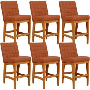 ndo muita excelência, o Kit 06 Banquetas Baixa Para Cozinha Bancada Bar Sala De Jantar Fixa Mila L02 Tecido Terracota - Lyam Decor é o complemento que faltava para deixar sua casa ainda mais extraordinária. Seu encosto com costura em padrão quadriculado e assento estofados, centralizam em si uma graciosidade estonteante, sem perder todo o seu conforto. A estrutura em madeira, na cor nozes, também é digna de notoriedade, por imprimir bastante personalidade a sua decoração. Vale ressaltar ainda, o apoio para os pés que garante maior à mesma. Pode ser acomodada em cozinha americana, ambientes integrados, espaços gourmets, bancadas ou em seu home bar, independente do lugar, ela desperta logo de cara bastante elegância e deixa tudo mais despojado, perfeita para criar um ambiente harmonioso e agradável para receber a família e amigos, quando favorável.