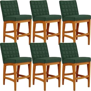 Entregando muita excelência, o Kit 06 Banquetas Baixas Para Cozinha Bancada Bar Sala De Jantar 90 cm Fixa Mila L02 Facto Verde Musgo - Lyam Decor é o complemento que faltava para deixar sua casa ainda mais extraordinária. Seu encosto com costura em padrão quadriculado e assento estofados, centralizam em si uma graciosidade estonteante, sem perder todo o seu conforto. A estrutura em madeira, na cor nozes, também é digna de notoriedade, por imprimir bastante personalidade a sua decoração. Vale ressaltar ainda, o apoio para os pés que garante maior segurança à mesma.
