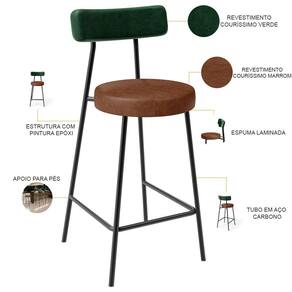 Amplamente moderna, dispondo de muito realce e design singular, o Kit 06 Banquetas Baixa Para Cozinha Sala De Jantar Bar Bancada Milão L02 Facto Verde Musgo Couríssimo Marrom - Lyam Decor vem com a personalidade e elegância que sua decoração merece! Estruturada em aço carbono, contrasta lindamente com o encosto e assento estofados, cabe mencionar ainda seu revestimento em Couríssimo, é confeccionada por materiais de excelente qualidade, extremamente resistentes e aconchegantes.