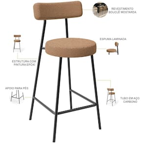 Amplamente moderna, dispondo de muito realce e design singular, a Banqueta Baixa Para Cozinha Sala De Jantar Bar Bancada Milão L02 Bouclê Mostarda - Lyam Decor vem com a personalidade e elegância que sua decoração merece! Estruturada em aço carbono, contrasta lindamente com o encosto e assento estofados, cabe mencionar ainda seu revestimento em Bouclê, é confeccionada por materiais de excelente qualidade, extremamente resistentes e aconchegantes. Possui altura ideal, garantindo o encaixe perfeito no ambiente, otimizando seu espaço e promovendo máximo conforto. Pode ser disposta em bancada, cozinha americana, área gourmet ou home bar, as possibilidades são infinitas e as combinações ficarão perfeitas. Adquira já a sua!!