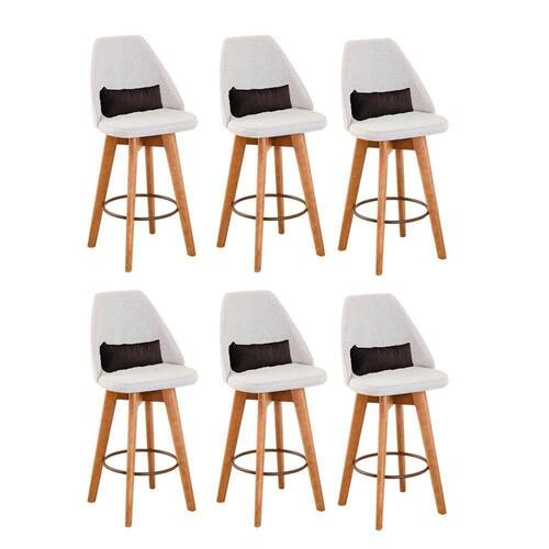 Kit 06 Banquetas Alta Maya Giratória Com Encosto Linho Bege Claro E Almofada Suede Marrom - Gat Magazine Banqueta Maya Giratória - GAT MAGAZINE A Banqueta Maya possui assento e pés em madeira eucalipto com sistema giratório! Os pés contam com um reforço que proporciona um suporte de peso de até 120 assento é revestido com espuma D-23. Além de bonita e charmosa, vai trazer para seu ambiente elegância e proporcionará conforto para sua família e amigos nos momentos de lazer.