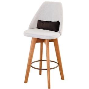 - Assento revestido com espuma D-23; - Base Giratória em madeira de Eucalipto; - Arco redondo em ferro; - Assento em tecido; - Suporta até 120kg.
