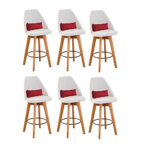 Kit 06 Banquetas Alta Maya Giratória Com Encosto Linho Bege Claro E Almofada Suede Vermelho - Gat Magazine Banqueta Maya Giratória - GAT MAGAZINE A Banqueta Maya possui assento e pés em madeira eucalipto com sistema giratório! Os pés contam com um reforço que proporciona um suporte de peso de até 120 Kgs.O assento é revestido com espuma D-23. Além de bonita e charmosa, vai trazer para seu ambiente elegância e proporcionará conforto para sua família e amigos nos momentos de lazer.