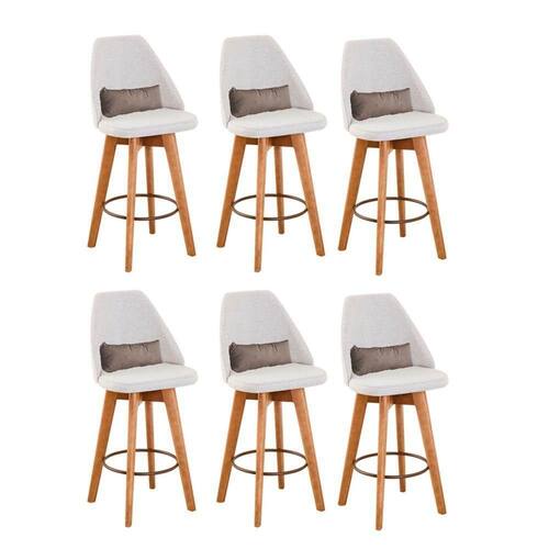 Kit 06 Banquetas Alta Maya Giratória Com Encosto Gourmet Linho Bege E Almofada Corino Bege - Gat Magazine Banqueta Maya Giratória - GAT MAGAZINE A Banqueta Maya possui assento e pés em madeira eucalipto com sistema giratório! Os pés contam com um reforço que proporciona um suporte de peso de até 120 assento é revestido com espuma D-23. Além de bonita e charmosa, vai trazer para seu ambiente elegância e proporcionará conforto para sua família e amigos nos momentos de lazer.